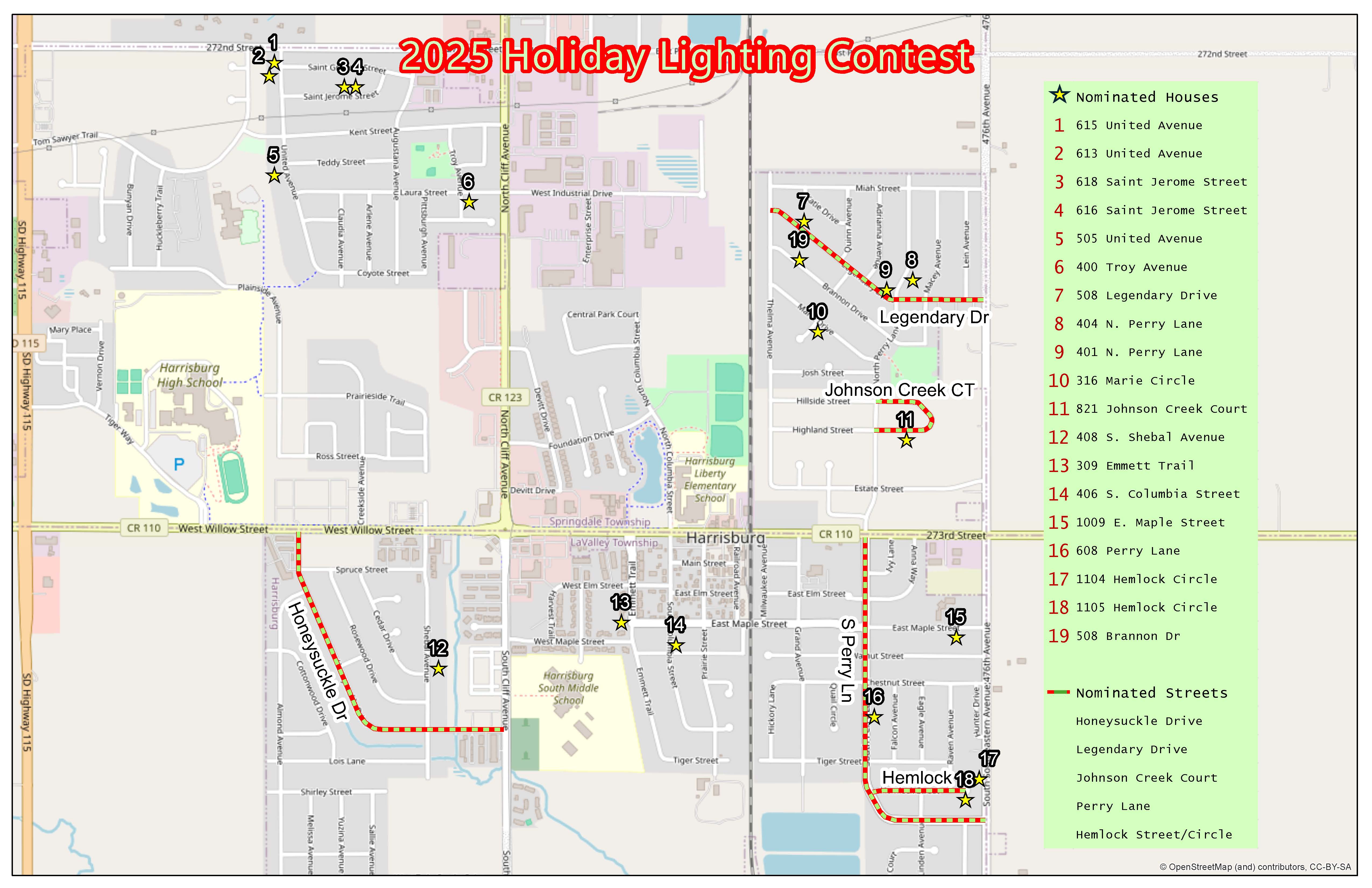 Watch our social media (and here) for a map of listed entries. Then take a cruise with the family or a date night to see all the great entries! To submit your vote for the best display, simply fill out the voter form.